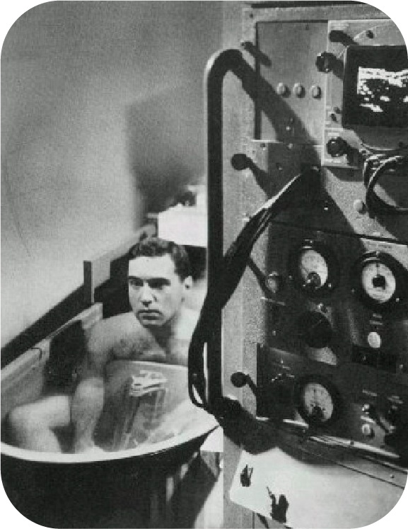 realiza os primeiros exames submersos — nascimento da ultrassonografia diagnóstica.